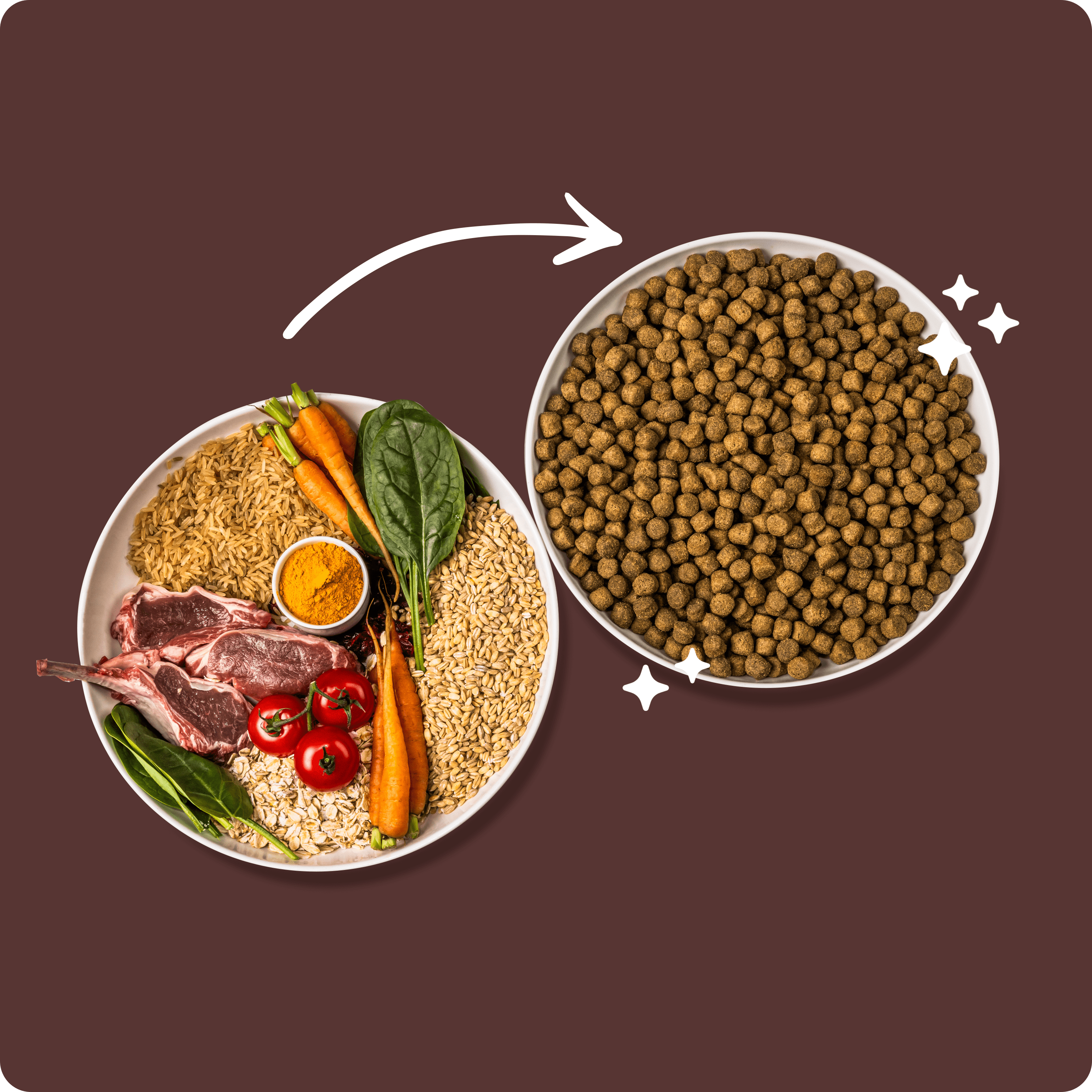 In this dog food with high meat content, each affectionate mouthful boasts high levels of freshly prepared lamb, gently cooked to perfection at just over 80°C to retain its succulent taste and digestive benefits.