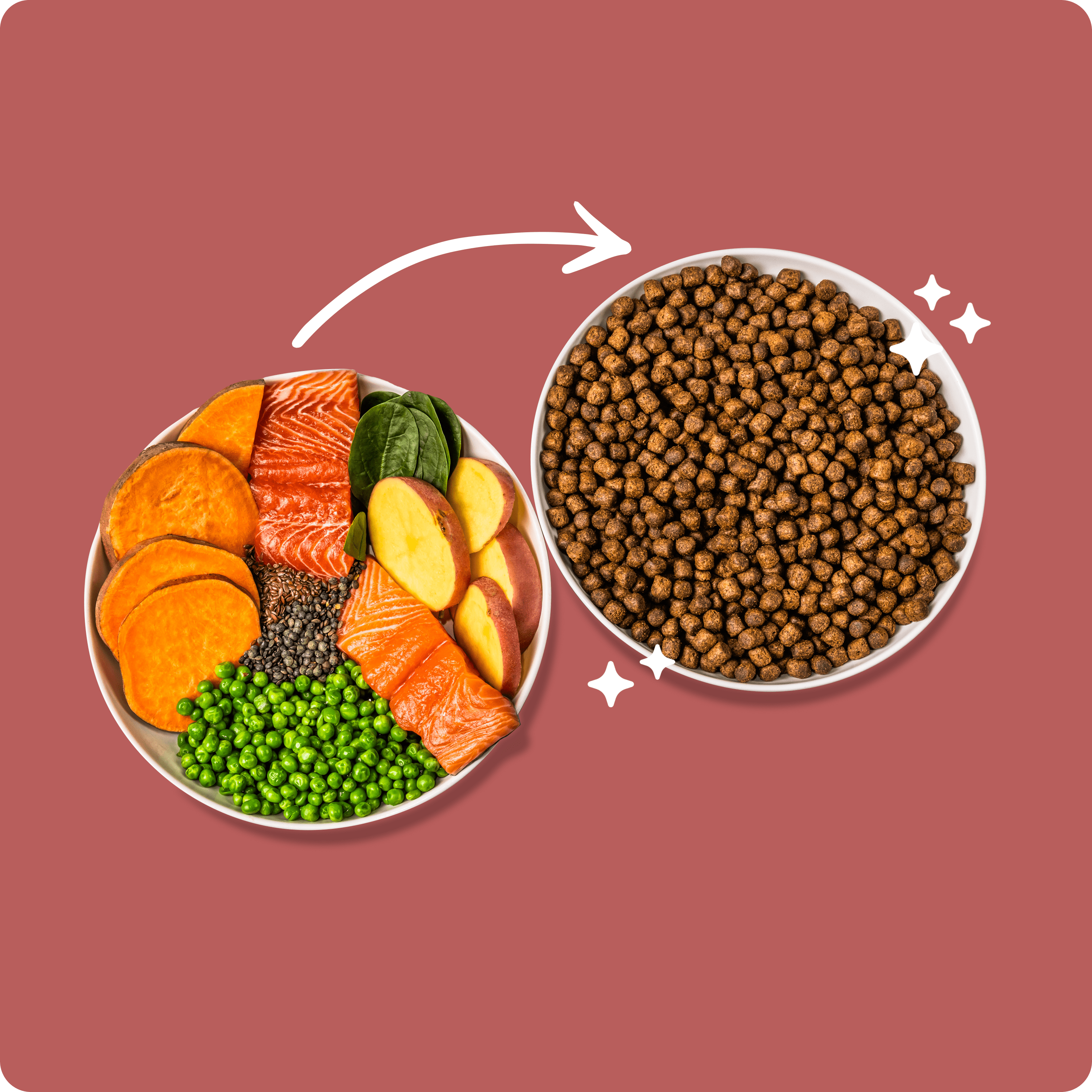 Composition: Trout and Salmon 52% (Freshly Prepared Trout 27%, Dry Salmon 23%, Salmon Stock & Salmon Oil 2%), Peas 17%, Sweet Potato 13%, Potato 7.5%